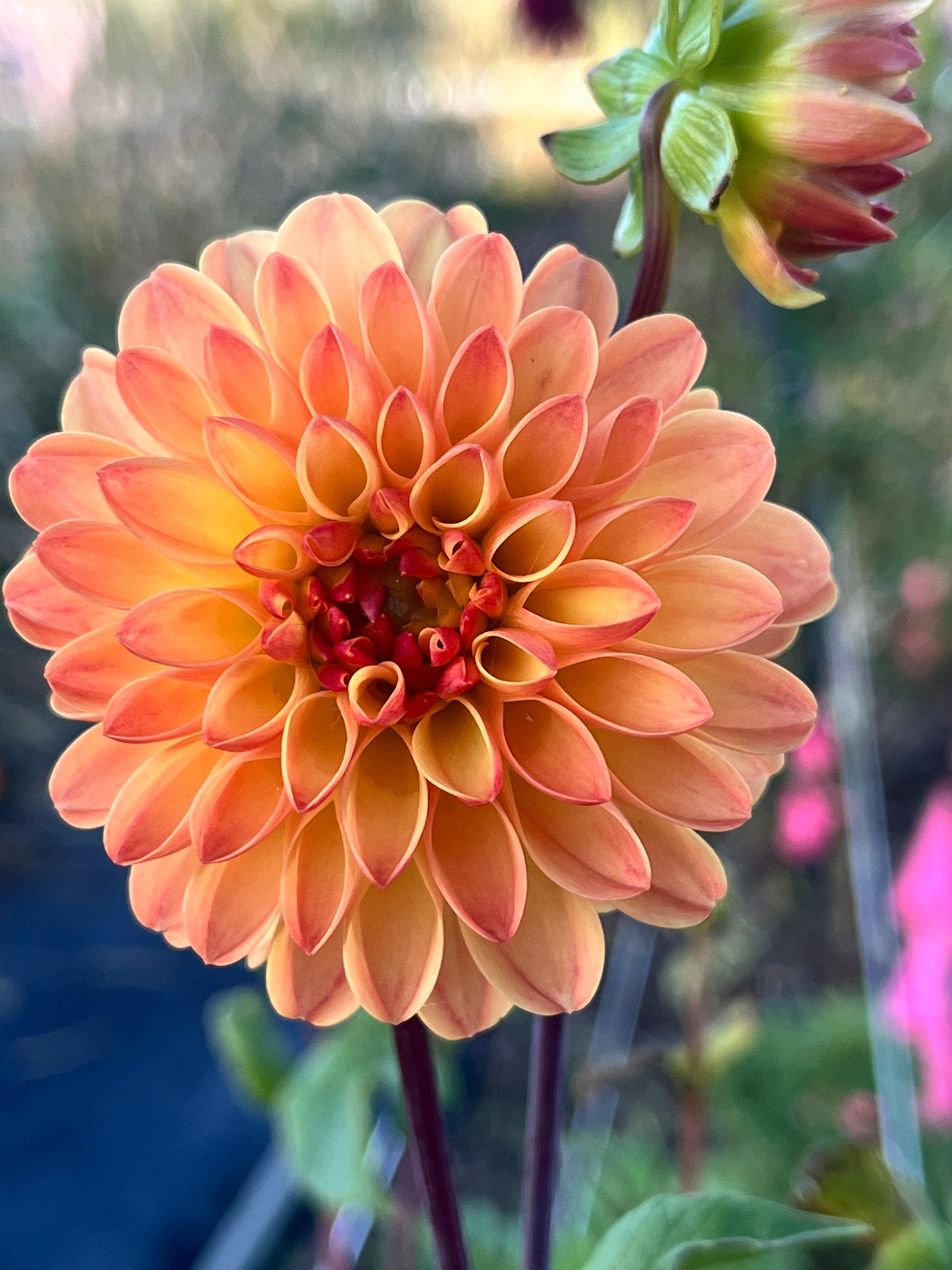 Jowey Chantal showcases distinctive ball-shaped blooms, blending shades of orange and yellow with a rich, deep orange blush.