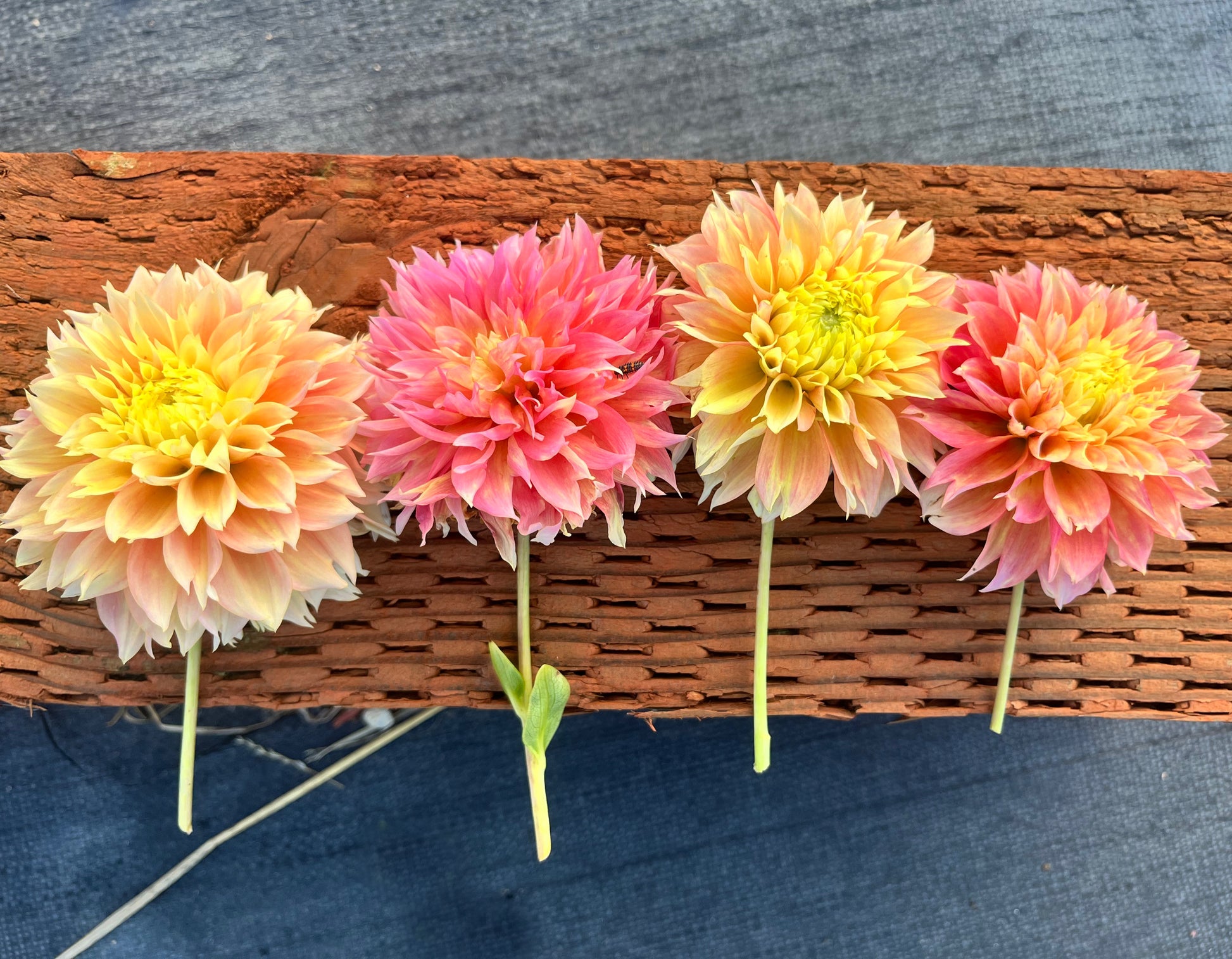 Salmon and yellow colored laciniated blooms. Temperatures strongly influence color on this variety.