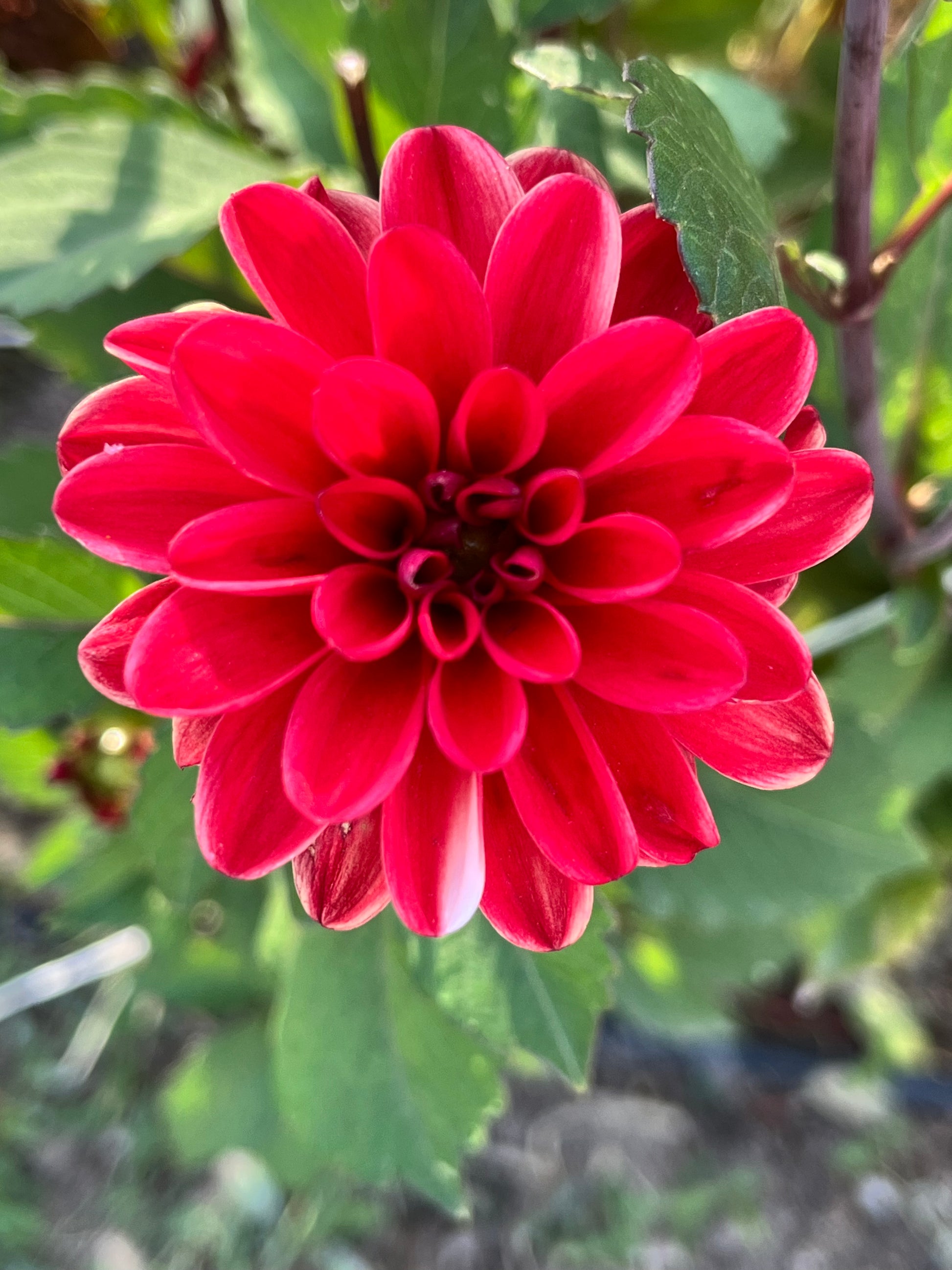 Beautiful red and white blooms. No two blooms are the same. Small compact plant.