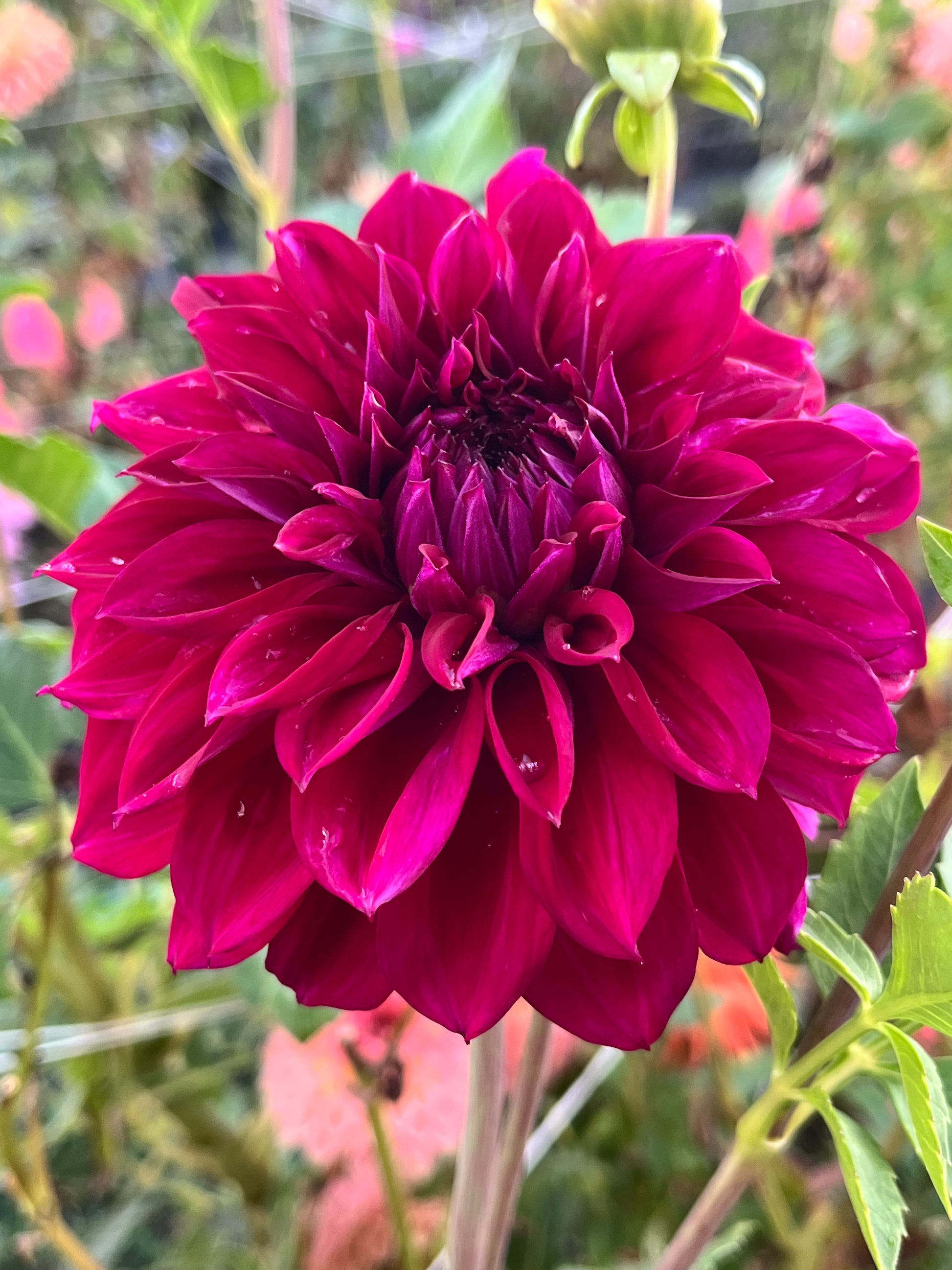A deep plum-purple dahlia with rich, velvety petals that bring dramatic elegance to arrangements and garden beds. This 2021 Bloomquist introduction stands out for its saturated tones and sturdy performance in design settings.